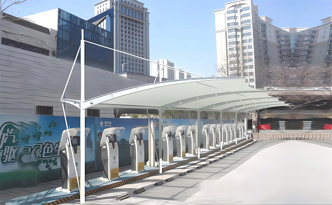 (1)大跨度。膜结构自重轻、抗震性能好,可以不需要内部支承,克服了传统结构在大跨度(无支撑)建筑上实现所遇到的困难,可创造巨大的无遮挡可视空间,有效增加空间使用面积。