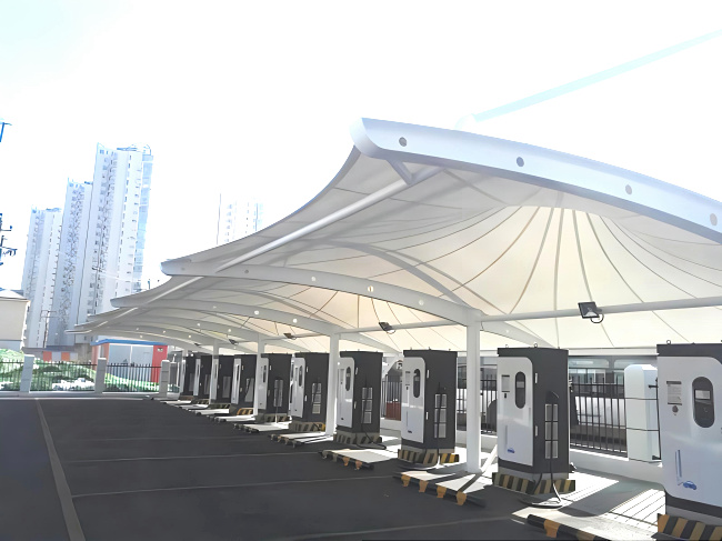 (1)大跨度。膜结构自重轻、抗震性能好,可以不需要内部支承,克服了传统结构在大跨度(无支撑)建筑上实现所遇到的困难,可创造巨大的无遮挡可视空间,有效增加空间使用面积。
