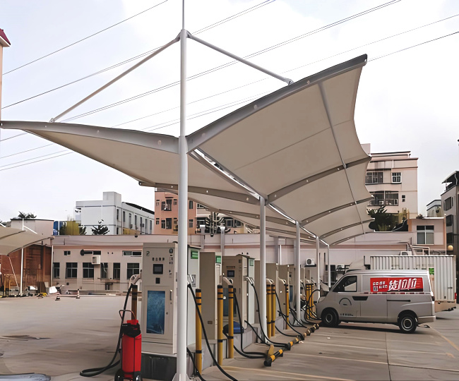 (1)大跨度。膜结构自重轻、抗震性能好,可以不需要内部支承,克服了传统结构在大跨度(无支撑)建筑上实现所遇到的困难,可创造巨大的无遮挡可视空间,有效增加空间使用面积。