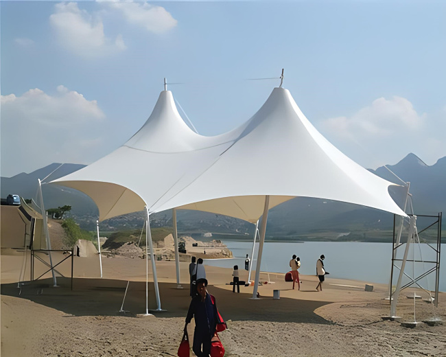 (7)适用广。从气候条件看,膜结构建筑适用的地域广阔;从规模上看,可以小到单人帐篷、花园小品,大到覆盖几万、几十万平方米的建筑。甚至有人曾设想覆盖一个小城,实现人造自然。