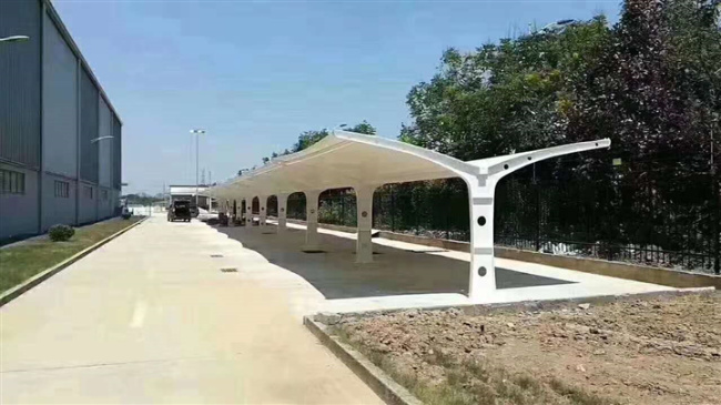 膜结构停车棚,自重轻,具有良好的受力特点——成为大跨度空间结构的主要形式之一。停车场的规划和建设成为现代城市规划的重要组成部分,在以后的建设里会变得越来越重要。膜结构轻巧、别致的造型在停车场及候车厅的建设中担当了重要角色,除了满足防风雨、防日晒等基本功能外,并有较好的标识招揽效果,展现了人们个性化的一面。