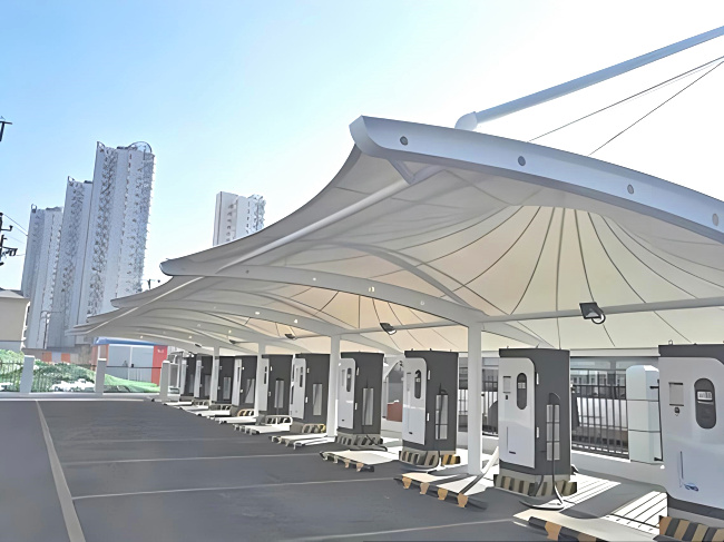 (1)大跨度。膜结构自重轻、抗震性能好,可以不需要内部支承,克服了传统结构在大跨度(无支撑)建筑上实现所遇到的困难,可创造巨大的无遮挡可视空间,有效增加空间使用面积。