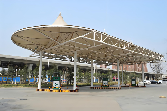 (1)大跨度。膜结构自重轻、抗震性能好,可以不需要内部支承,克服了传统结构在大跨度(无支撑)建筑上实现所遇到的困难,可创造巨大的无遮挡可视空间,有效增加空间使用面积。