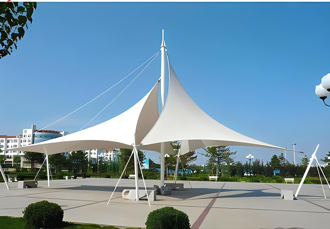 (1)大跨度。膜结构自重轻、抗震性能好,可以不需要内部支承,克服了传统结构在大跨度(无支撑)建筑上实现所遇到的困难,可创造巨大的无遮挡可视空间,有效增加空间使用面积。