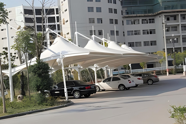 膜结构停车棚,自重轻,具有良好的受力特点——成为大跨度空间结构的主要形式之一。停车场的规划和建设成为现代城市规划的重要组成部分,在以后的建设里会变得越来越重要。膜结构轻巧、别致的造型在停车场及候车厅的建设中担当了重要角色,除了满足防风雨、防日晒等基本功能外,并有较好的标识招揽效果,展现了人们个性化的一面。