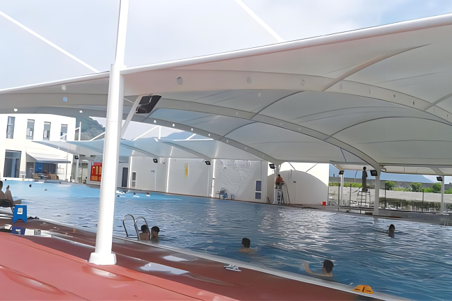 膜结构游泳池的最大特点就是其轻盈的结构和美观的外形。膜材的质地轻柔,使得整个游泳池的重量非常轻,安装和维护都非常方便。同时,膜材具有一定的透光性,能够让阳光自然地照射到游泳池内部,使整个场馆显得更加明亮、通透。此外,膜材可以适应各种不同风格的设计,能够与周围的环境完美融合,让游泳池成为城市或私人住宅中的一道亮丽风景线。